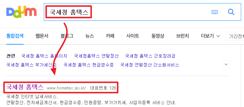 1. 검색포털에서 국세청 홈택스 검색 후 홈택스 홈페이지로 이동해 주세요