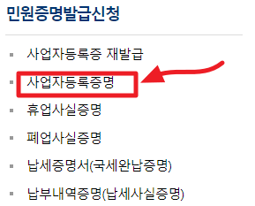 3. 아래 사진에 보이는 사업자등록증명을 선택해 주세요