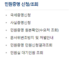 2. 상단 메뉴에 있는 민원증명 선택해 주세요