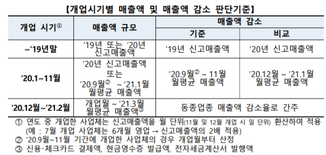 소상공인 버팀목 자금플러스 지원대상은 개업시기별 매출액과 매출액 감소에 따라 지원대상이 판단이 되는데요. 사업체별로 반기별 매출액 등과 같은 계절적인 요인도 고려된다고 하니 참고하시기 바랍니다.