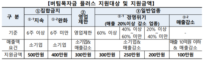 소상공인 버팀목자금 플러스 지원금액 및 지원내용
