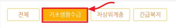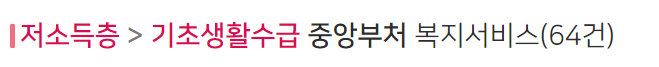 4. 아래에 있는 '기초생활수급'을 선택해주시면 오른쪽 사진과 같이 64건의 혜택을 확인할 수 있습니다.