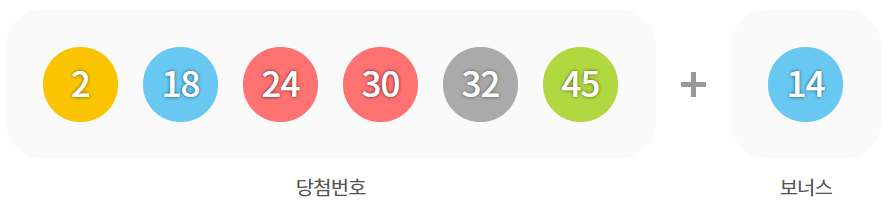 제960회 로또 당첨번호는 2 18 24 30 32 45번이 추첨되었습니다. 2등을 위한 보너스 번호는 14번이 뽑혔네요!