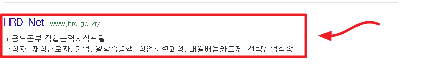 1. 검색 포털을 통해 국민내일배움카드 검색 후 'HRD-Net 홈페이지'로 이동해 주세요