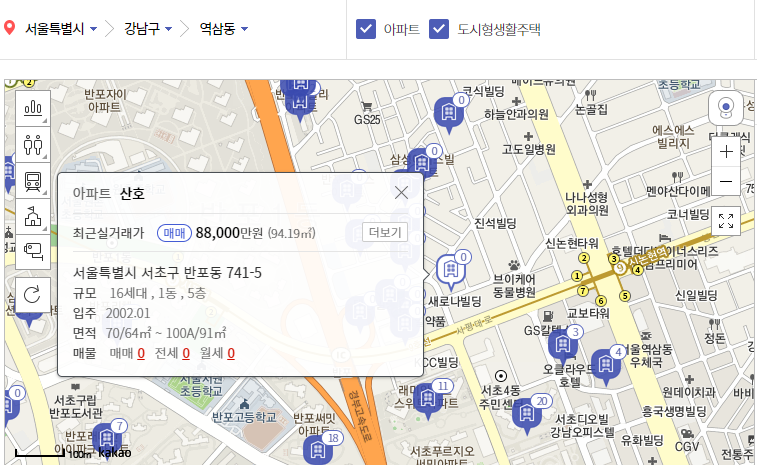 3. 지도 페이지가 나오면 원하는 지역 정보를 입력 후 검색해 주시고, 원하는 매물을 선택하면 됩니다