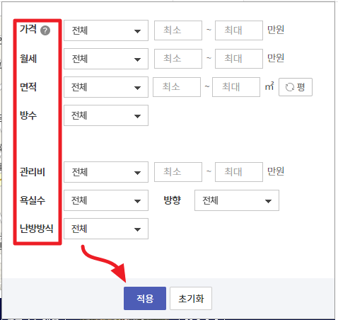 이처럼 사용자 친화적인 웹사이트 환경을 제공하는 부동산114는 상세검색 기능을 통해 원하시는 가격대를 비롯해 면적이나 방 개수, 욕실 개수, 난방방식, 관리비 금액등 세부적인 사항까지 적용가능해 좀 더 효율정인 아파트 시세 조회가 가능합니다.