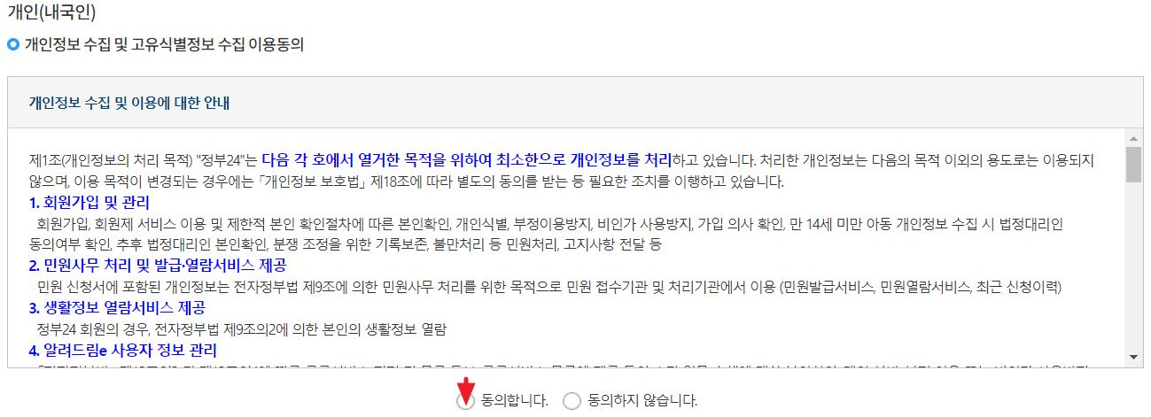 4. 주민등록등본 인터넷발급 비회원 신청 동의란에 동의해 주세요