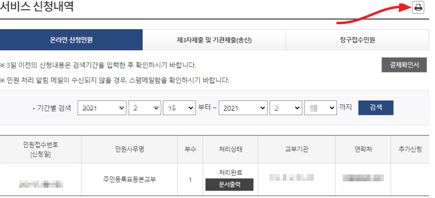 주민등록등본 인터넷발급 마무리