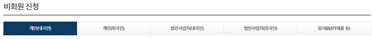 3. 신청하기를 누른 후 비회원 신청하기를 선택해 주세요