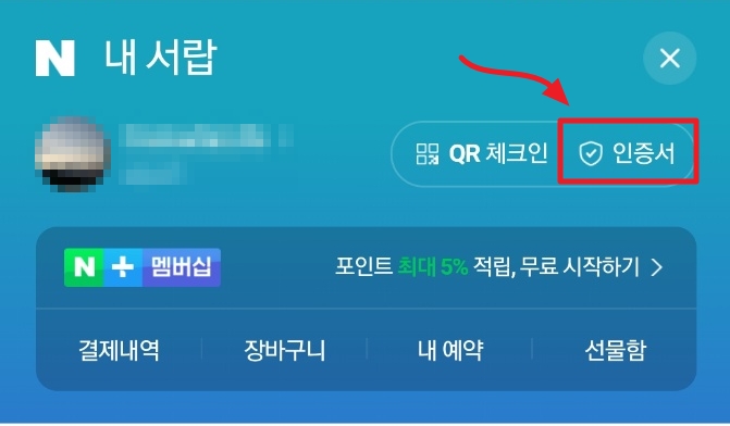 2. 내 서랍 메뉴로 이동하면 오른쪽 상단에 있는 인증서를 선택해 주세요