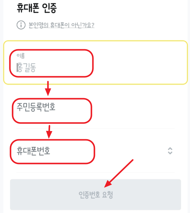 5. 본인 명의 인증을 통해 인증을 실시하세요