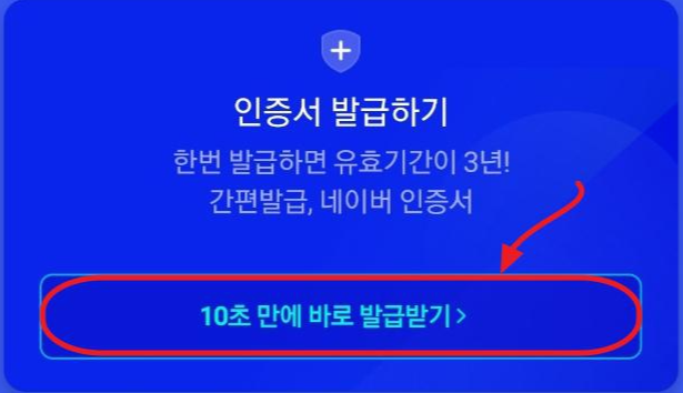 3. 인증서 페이지 이동 후 10초 만에 바로 발급받기를 선택해 주세요