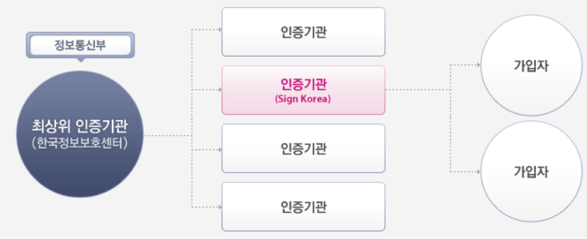 전자서명이란? 전자서명 검증키를 통해 공신력 있는 인증기관이 확인 검증 절차를 거치는 행위를 의미합니다. 인증기관은 서명자의 전자서명 검증키를 통해 정보가 포함된 전자적 인증서를 발급하게 됩니다.