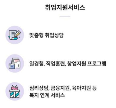 국민 지원 취업제도는 저소득계층의 취업 사각지대에 있는 분들을 위해 취업지원 서비스를 제공함으로써 그들의 취직을 돕고 직업훈련 프로그램을 참여하는 동안 최소한의 생활자금을 지원해 보다 안정적인 직업훈련을 이수하게끔 돕고 있습니다.