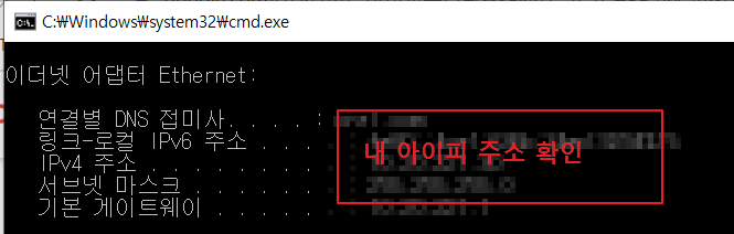 2. IP주소 조회를 통해 내 아이피 주소 확인해 주세요.