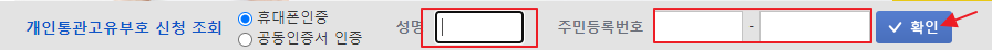 2. 개인동관고유부호 아이콘을 누른 후 이름과 주민등록번호 입력하고 실명인증을 눌러주세요