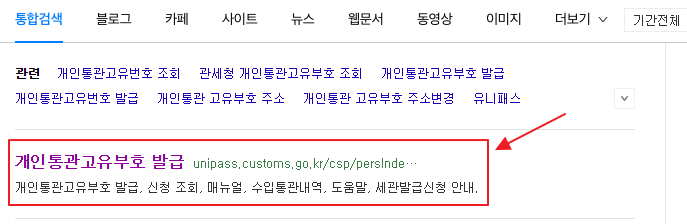 1. 검색포털에 개인통관고유부호를 검색해 주세요