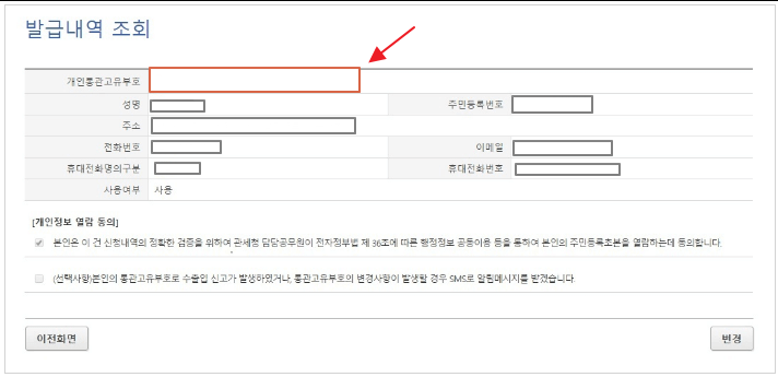 4. 개인통관고유부호를 확인할 수 있습니다.
