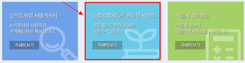 2. 홈페이지 하단에 있는 농업경영체등록 온라인 서비스를 눌러주세요