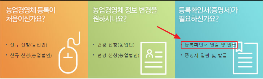 농업경영체등록 확인서 발급 방법