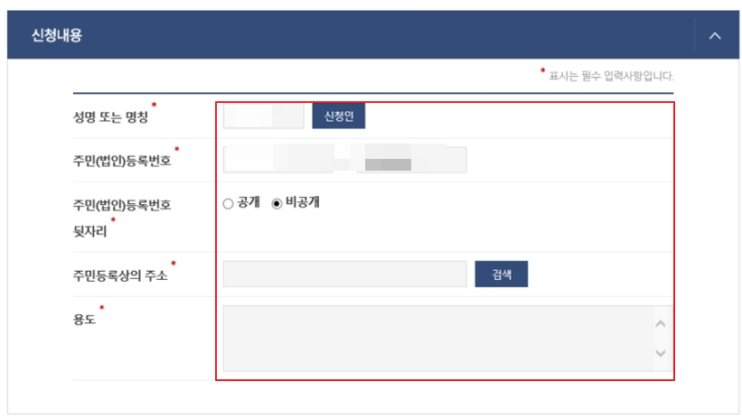 6. 수령방법을 기입 후 민원 신청하기를 눌러주세요