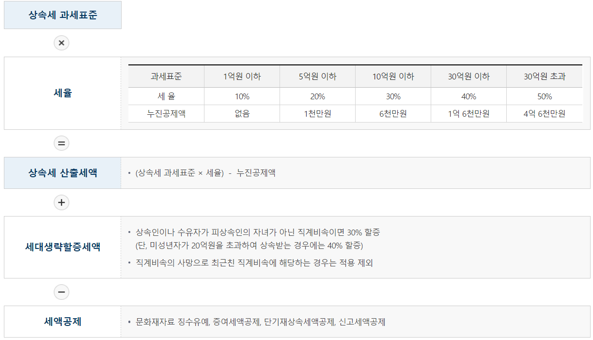 상속세= (과세표준 X 세율) ㅡ 누진공제액