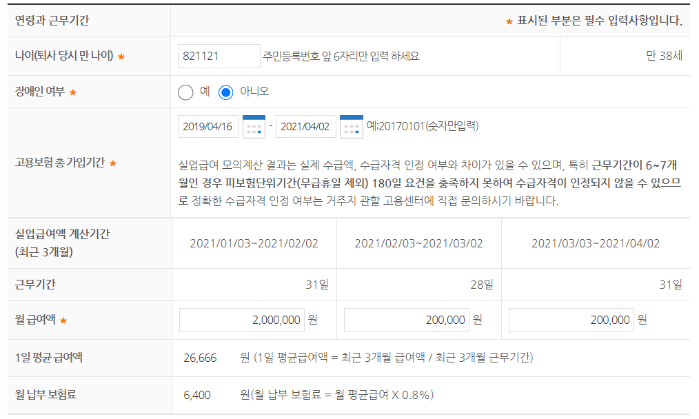 실업급여 모의계산은 실제 실업 시 실업급여 지급액을 추청해볼 수 있는 것입니다. 실업급여 모의계산은 실제 사용자가 최소한의 정보를 입력해서 산정되는 계산이므로 실제 수급일수 및 지급액의 차이가 있을수 있음을 인지하시기 바랍니다. 그러므로 실업급여 모의계산 내용을 바탕으로 수급자격에 해당된다고 생각하시면 안되고 실업급여 조건을 잘 따져보셔야 한답니다.