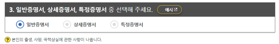 기본증명서는 일반/ 상세/ 특정 기본증명서로 나뉘며 제출에 요구되는 서류에 맞게 발급받아 제출하시면 됩니다.