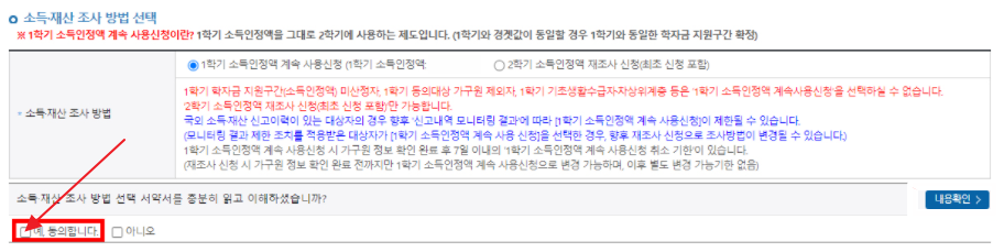 ▼소득재산 조사방법 선택 동의해 주세요