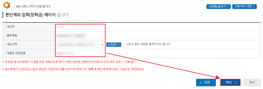 ▼계좌번호를 입력 후 확인을 눌러주세요